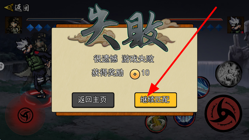 4、若格斗失败,可点击继续匹配,再次寻找对手进行挑战,不断积累格斗经验,提升自身的格斗技巧,向着胜利迈进。