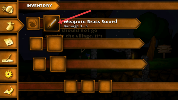 4、在inventory中装备黄铜剑,该武器伤害为3-6,装备后可提升角色的战斗能力,在森林中击败敌人完成任务。