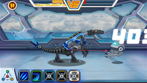 1、操控机械恐龙,点击下方技能图标释放攻击,与敌方机器人对战。