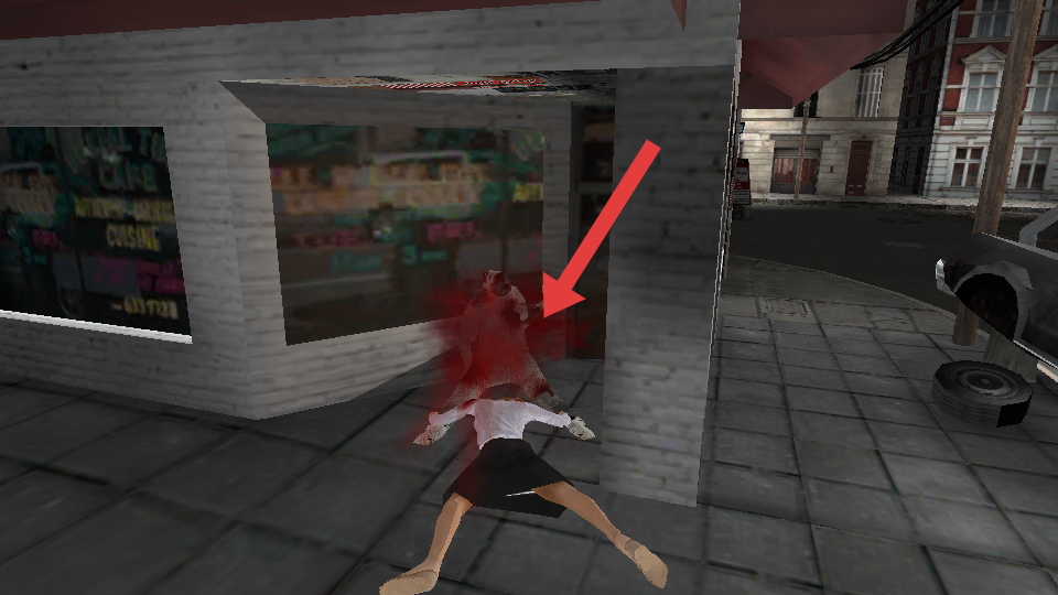 2、在参与者遇到靠近的丧尸的时候,瞄准箭头指向的快倒地的丧尸,快速射击,阻止僵尸靠近,保障了自身的安全。