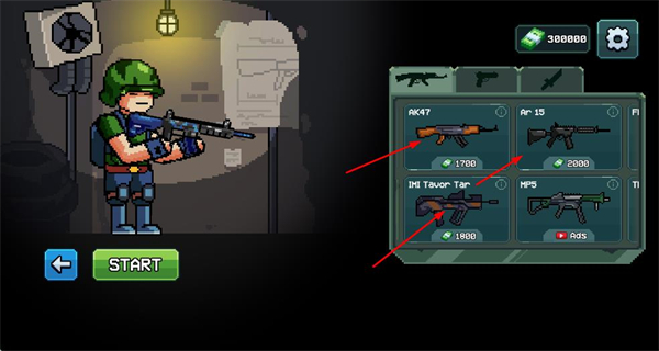 4、在武器界面,使用金币解锁或升级武器,提升战斗能力,应对更强敌人。