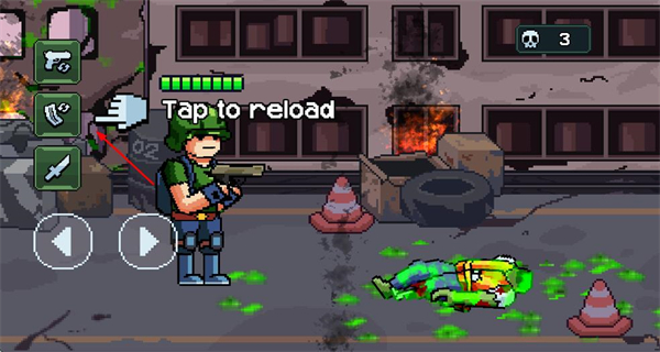2、战斗中,当出现Tap to reload提示时,点击换弹按钮进行换弹,保证武器持续输出。