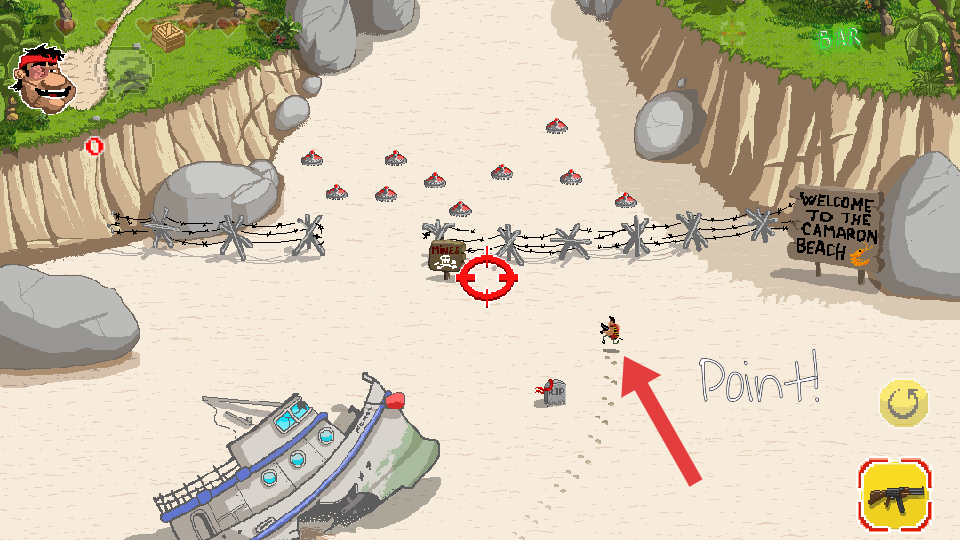 1、在沙滩场景中,点击屏幕空白的位置来操控参与者的行动,寻找前方的敌人,阻止敌人靠近或完成特定的任务。
