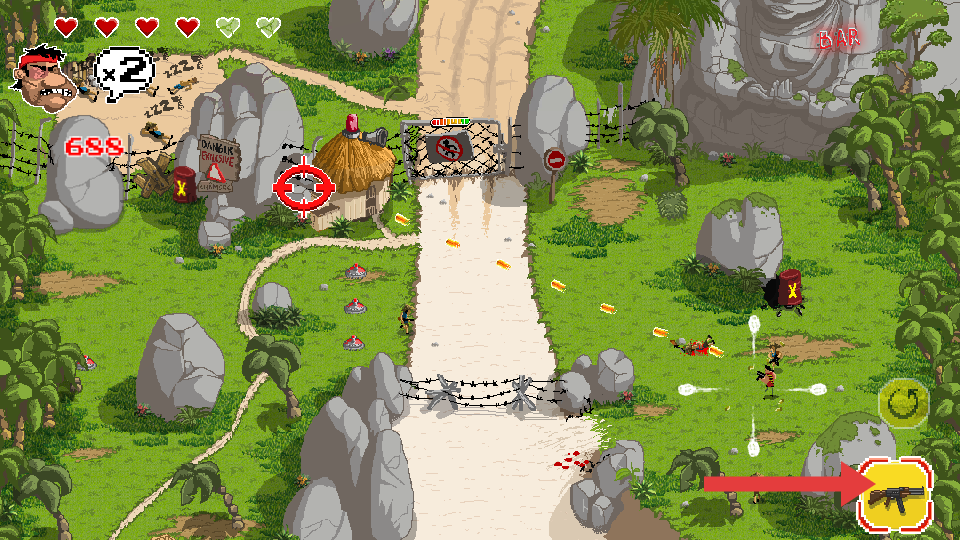 约翰曼波以复古像素风融合现代美术设计,打造街机感十足的横版射击体验,玩家化身雇佣兵驰骋于丛林、敌占城市等多样战场,既可用枪械精准射击敌人,也能投掷手榴弹、发射火箭筒攻坚,火箭筒更可摧毁一切建筑类目标,搭配动态难度调整与丰富关卡设计,在流畅操作中感受战术射击与激烈战斗的双重乐趣。