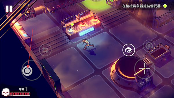 3、进入操作场景后,通过左侧移动按钮操控角色移动,前往枪械具象器所在位置,准备进行武器装备操作。