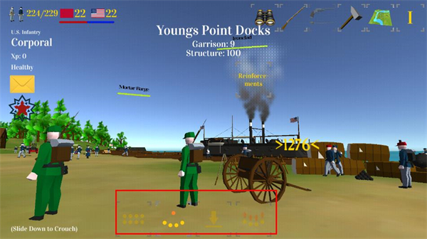 以维克斯堡战役为核心,深度还原了战役中的关键地点、兵种和战术,从港口的蒸汽船、炮台到战场的工事,细节刻画力求贴合历史,让玩家在游戏中能直观的感受到战争氛围。