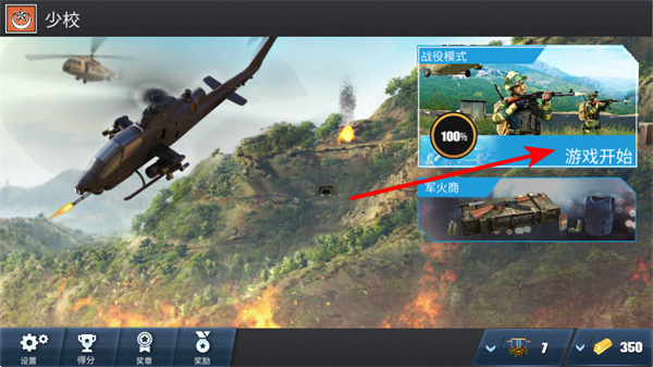 2、在少校界面,点击游戏开始按钮,进入战役模式,这是开启战斗冒险的关键步骤。