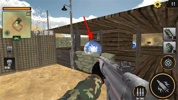 3、在守卫要塞场景中,查看前方的医药箱物资,靠近后拾取,精准可有效推进成长进程。