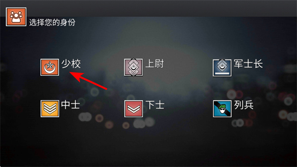 1、进入游戏后,选择身份少校,这是开启游戏的基础操作,进入对应身份游戏界面。