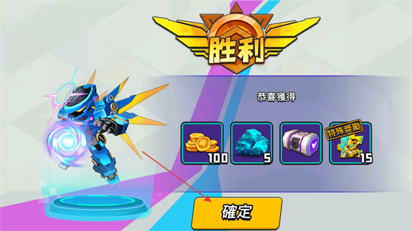 4、成功击败关卡内的所有怪物后即为胜利,点击确定按钮领取获胜奖励并回到主页。