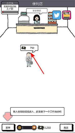 3、在便利店场景中,点击客人,可完成服务并获取金币奖励,这是积累游戏资源的关键操作,准确点击才能获得收益。