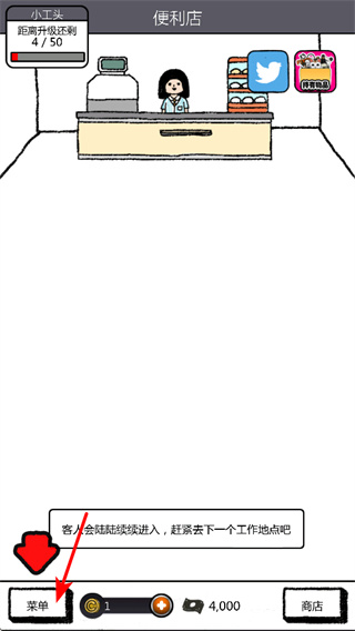 4、在便利店操作完成后,点击左下角菜单按钮,可查看游戏功能、任务或进行场景切换,准确点击才能规划后续游戏进程。