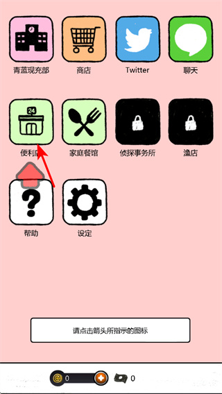 2、在功能选择界面,点击便利图标,可进入便利店场景,开启经营,解锁游戏功能的关键步骤,点击才能进入对应场景。