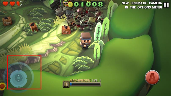 1、使用左侧虚拟摇杆控制角色在场景中移动,躲避僵尸攻击并调整战斗位置。
