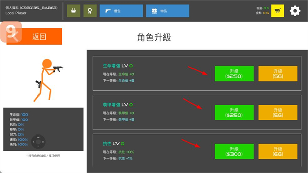 1、在角色升级界面,升级生命、装甲、抗性等属性,提升角色战力,为战斗奠定基础。