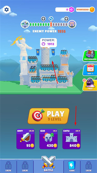 3、升级军队、装备、城堡等,增强自身整体战力,应对更强的敌方挑战,扩大战斗优势。
