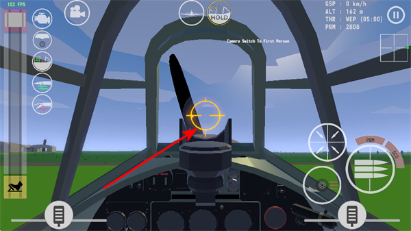 1、在飞机驾驶的第一人称视角界面,关注瞄准区域,可辅助进行目标锁定或飞行方向校准,提升驾驶的精准度。