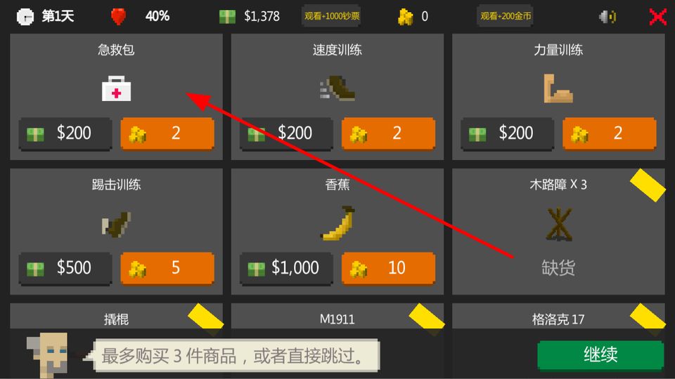 4、关卡结束后商店中,购买急救包等物品,这些物品能在战斗中恢复状态或提升自身能力,助力更好地参与后续战斗。