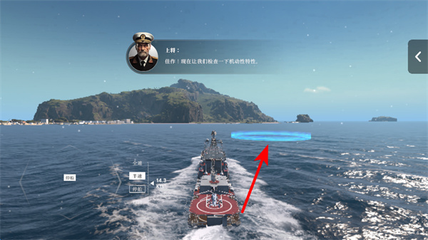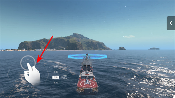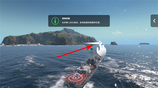 3、在屏幕上向右滑动可调整战舰视角,这是观察周围海域、发现敌人或资源的关键操作,滑动时需全面查看海面情况,避免遗漏重要目标。