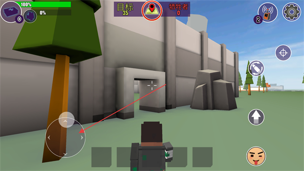 1、通过左侧摇杆控制角色移动,前往目标区域,寻找敌人。