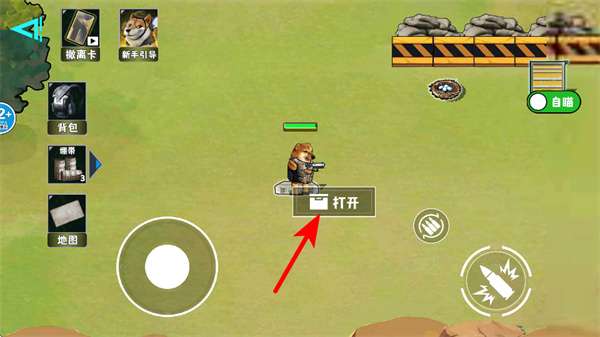 2、遇到可互动的道具箱时,点击打开按钮获取内部资源,后续可通过这类互动积累装备或物资,提升战斗能力。
