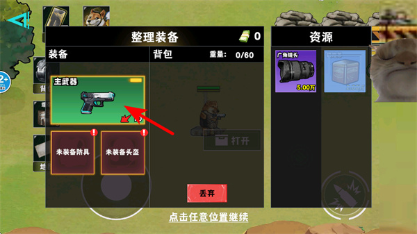 3、进入整理装备界面后,将获取的主武器装备到对应栏位,借助武器提升角色的输出能力,为后续战斗做准备。