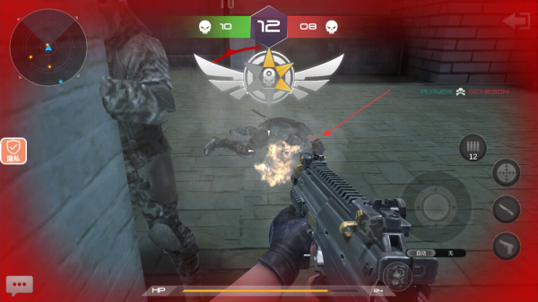 3、发现敌人后,瞄准并射击,成功击倒敌人时会出现击杀特效,此时继续关注上方击杀数等信息,保持战斗状态,准备应对其他可能出现的敌人。