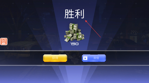 4、持续参与战斗,在击杀数达到胜利条件后,游戏会进入胜利结算界面,界面显示“胜利”并给予奖励,此时可选择点击“获得”领取奖励,或点击“双倍”观看广告获取双倍奖励。