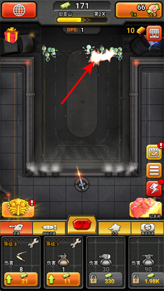3、进入下一关后,继续操控武器攻击新波次的僵尸,利用升级后的战力高效清理,积累更多资源。