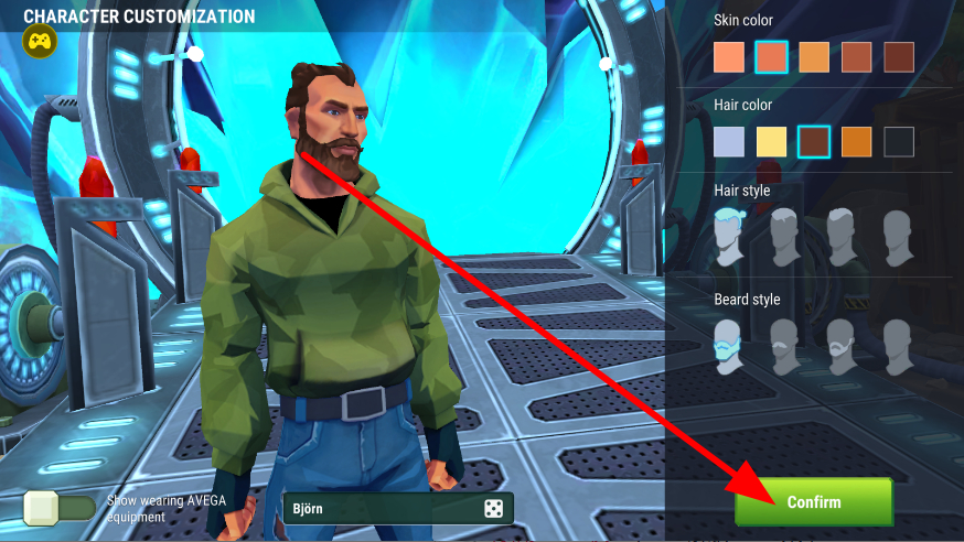 1、进入游戏后,自定义角色,选择皮肤颜色、头发颜色、发型以及胡须样式等,打造出符合自己喜好的角色形象,确定后进行确认。