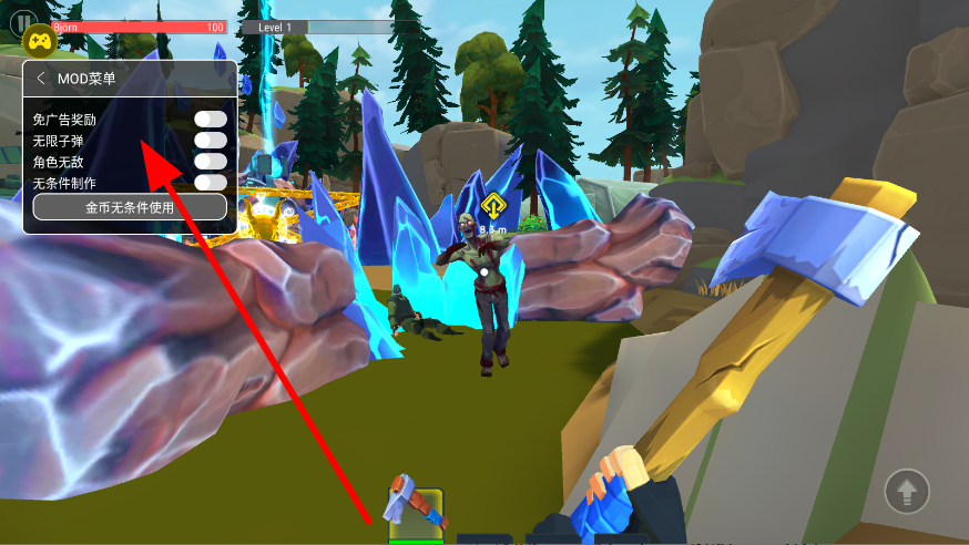 3、游玩时候在场景里会遇到可拾取的道具,靠近道具后,点击拾取按钮,获取道具,这些道具能在生存过程中发挥作用。
