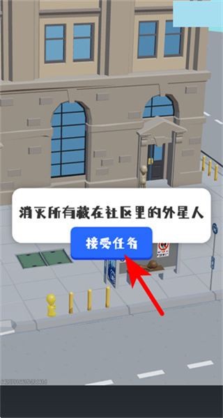 1、点击接受任务按钮,可承接消灭社区里的外星人任务,开启当前关卡的挑战。