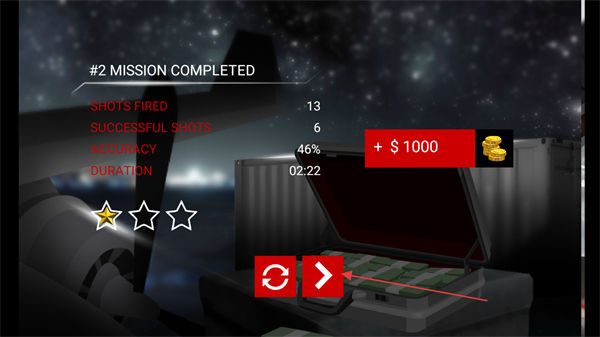 4、任务完成显示#2MISSIONCOMPLETED,获得奖励,点击箭头进入下一关。
