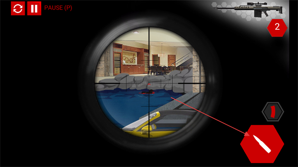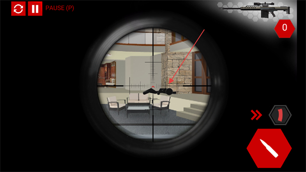 1、通过狙击镜瞄准室内敌方目标,发起攻击完成击杀,消耗弹药推进任务。