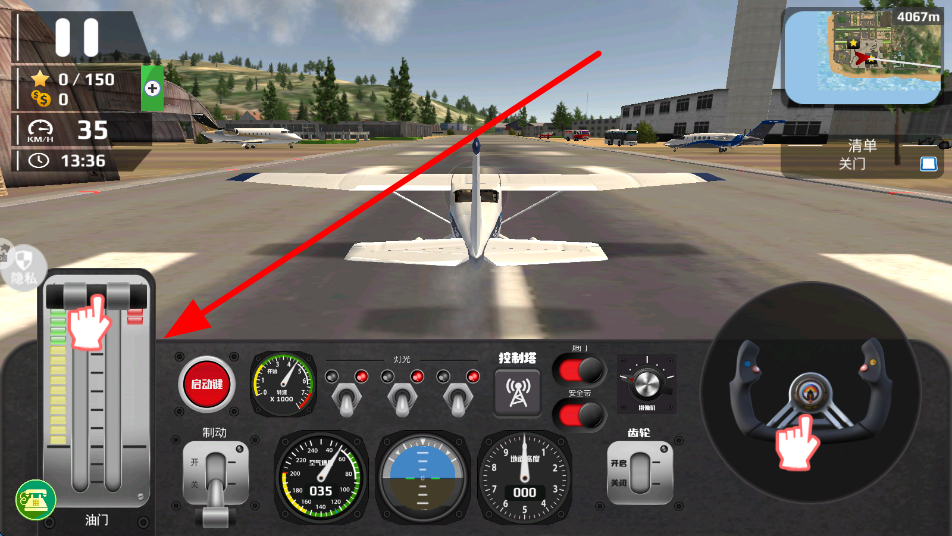 3、靠近飞机后,接受任务,点击出发按钮,开始执行飞行任务,此时将进入飞机驾驶的具体操作环节,体验飞行的乐趣。