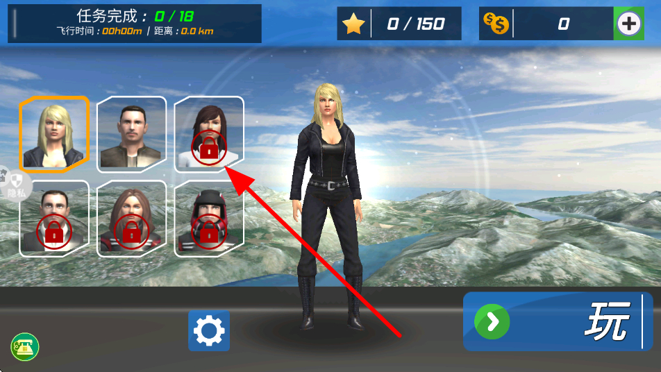 1、进入游戏界面后,新人玩家可以选择不同的角色,挑选好角色后,为后续的飞机驾驶做好准备,开启模拟飞行之旅。