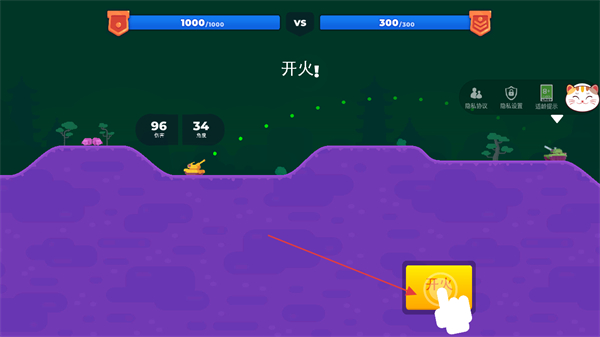 2、点击开火按钮,操控坦克发射炮弹,攻击敌方目标。