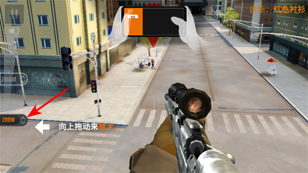 1、游戏中点击ZOOM按钮可放大瞄准镜,这是精准定位目标的关键操作,放大后能更清晰地观察目标细节。