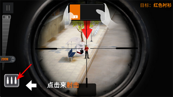 3、瞄准目标后点击射击按钮发起攻击,这是完成狙击任务的关键操作,射击时把握时机,确保一击命中目标。