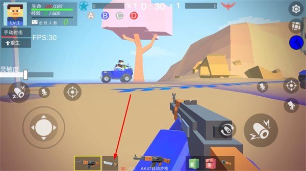 3、在战斗界面的下方装备栏中,找到当前使用的武器旁的其他武器选项。