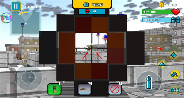 采用独特的卡通像素风格塑造场景与角色,色彩搭配鲜明活泼,既保留射击题材的紧张感,又增添趣味氛围,简洁的画面设计让狙击瞄准与环境观察更清晰直观。