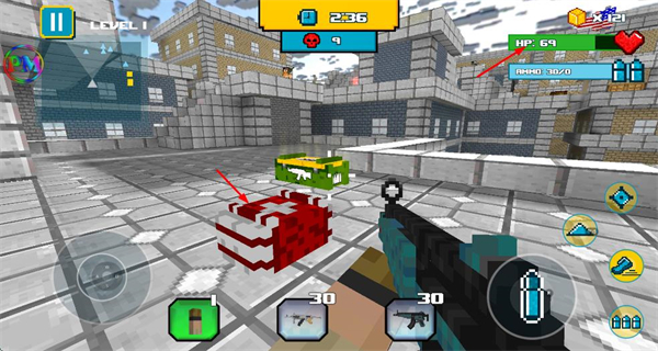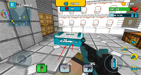 2、探索场景获取武器箱,更换更强武器,提升攻击能力,应对多样敌人。