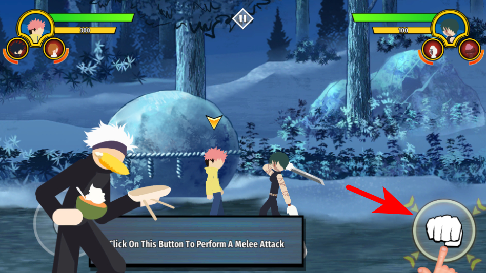 3、点击右侧的拳头按钮释放近战攻击,对敌方目标造成伤害推进战斗。