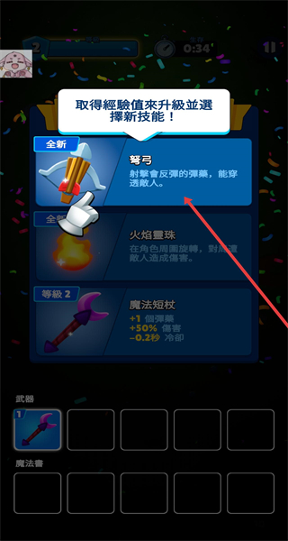 3、在角色完成升级后,在技能选择界面挑选合适的技能,增强战斗能力。