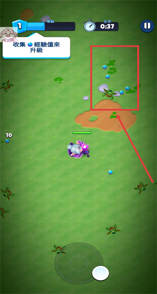 2、在击倒敌人后,可以通过移动角色靠近场景中的经验值道具,收集提升角色等级。