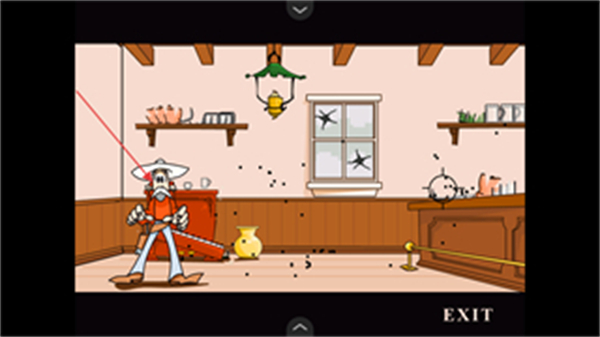 4、多次点击射击,让怪老头在房间内抱头鼠窜,直到击中他。