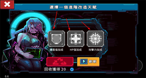 2、升级时选择进阶改造天赋,提升角色生存或攻击能力;也可回收天赋获取资源,灵活调整build方向。