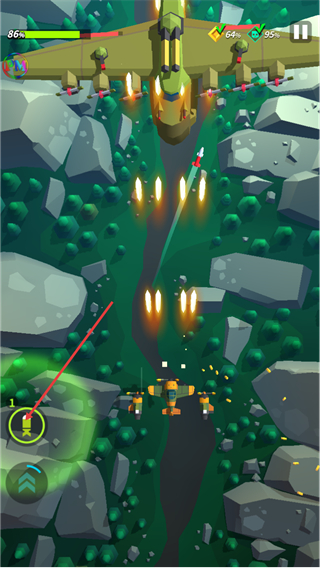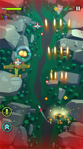 弹幕设计兼具密度与规律性,敌方子弹虽密集但有迹可循,搭配不同战机的属性优势,既能体验躲避弹幕的紧张感,又能通过合理选择战机发挥攻坚优势。
