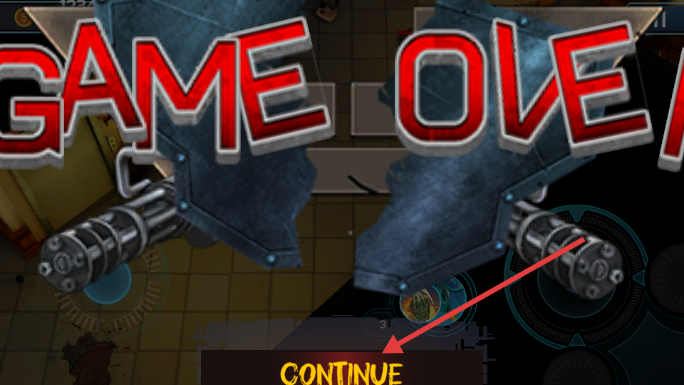 4、游戏失败出现“GAME OVER”时,点击“CONTINUE”按钮,可继续游戏,重新挑战关卡。