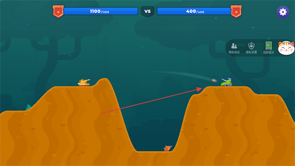 1、调整坦克炮弹发射角度,瞄准敌方坦克,确保炮弹能跨越地形障碍命中目标。
